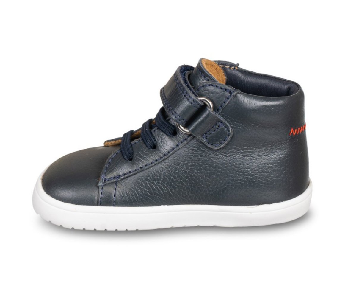La suela blanca de goma del Botín Barefoot Baby Free azul marino es antideslizante, flexible y perfectamente adaptada para acompañar cada pisada con seguridad. Este diseño garantiza una experiencia segura en cualquier tipo de terreno, promoviendo una pisada equilibrada y natural.