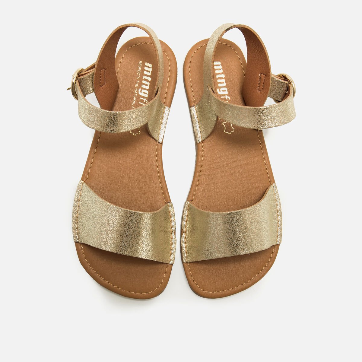 Las Sandalias de piel de pala abierta dorada para mujer, modelo Free Cleo de Mustang, son el equilibrio perfecto entre estilo y funcionalidad. Su diseño minimalista, con una banda ancha en el empeine y un cierre ajustable de pulsera en el tobillo, asegura una cómoda sujeción sin comprometer su estética moderna. El acabado brillante en color dorado claro proporciona un toque luminoso que complementa cualquier conjunto, desde ocasiones casuales hasta eventos más sofisticados.