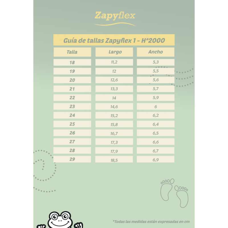 Las Zapyflex integran una suela fina, plana y extremadamente flexible. Con este diseño, el calzado proporciona una verdadera conexión con el suelo, lo que favorece la propiocepción, el equilibrio y la autonomía en los movimientos. Además, cuentan con cero drop (sin desnivel entre la puntera y el talón), asegurando una postura corporal adecuada y una pisada natural desde la primera etapa de aprendizaje.