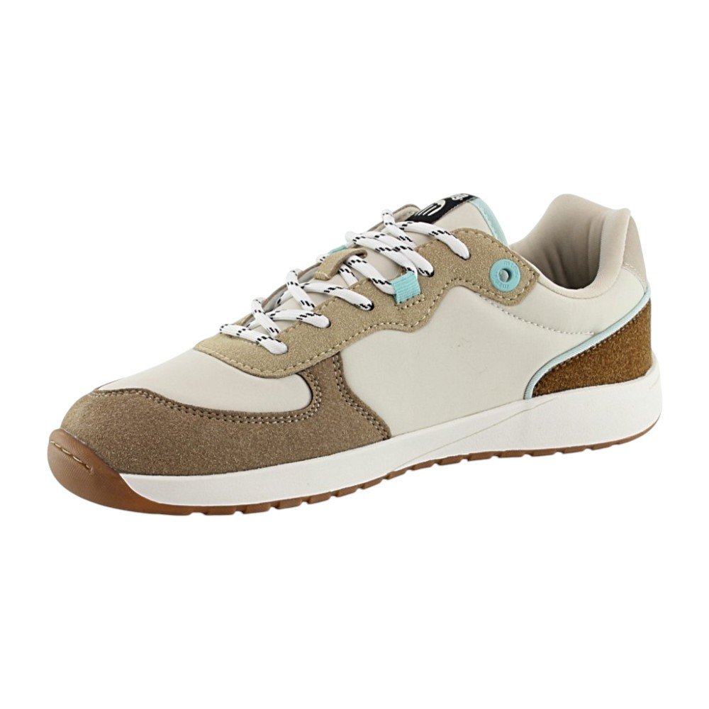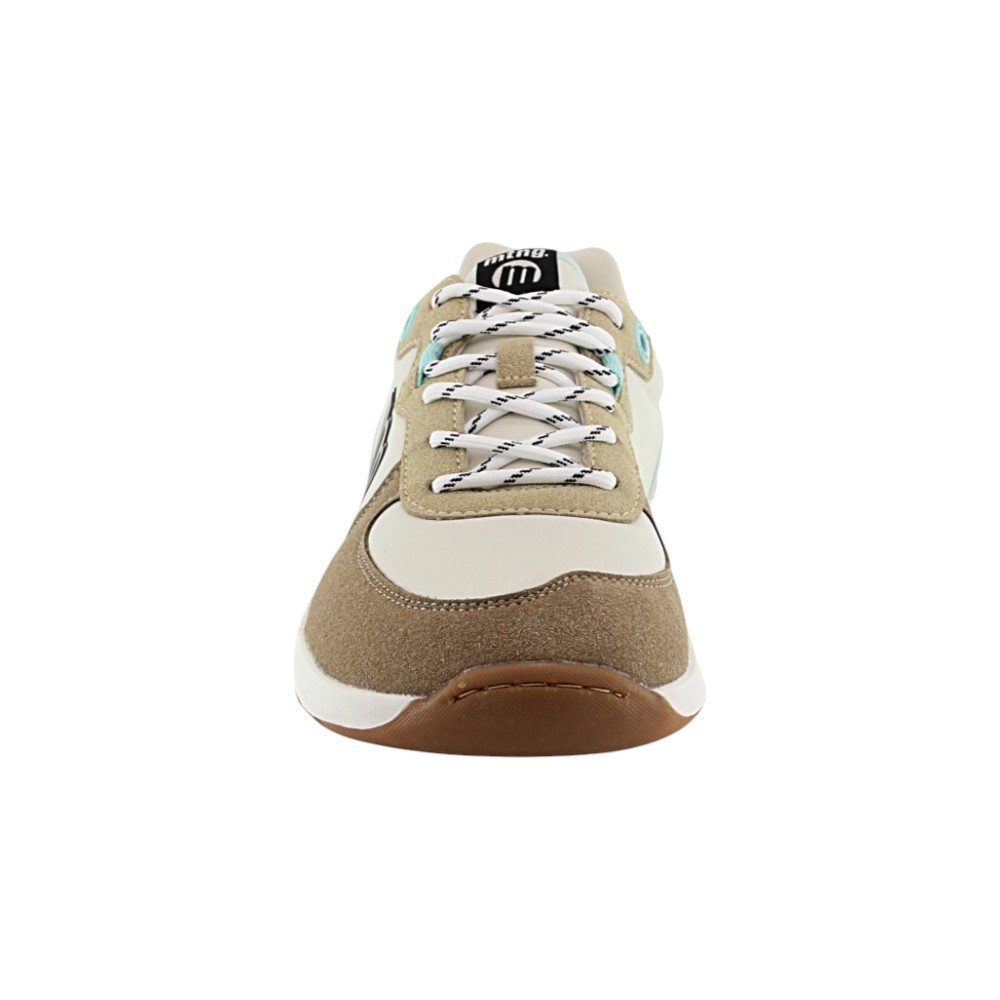 Las zapatillas Free Apolo de la marca Mustang se presentan en un elegante tono beige y taupe, con detalles que las destacan visualmente. Sus pasadores y ribetes en azul claro añaden un toque fresco, mientras que el logo lateral en relieve asegura que lleves un producto de calidad premium. Con paneles cuidadosamente distribuidos en diferentes tonos y texturas marrones, estas zapatillas refuerzan una estética deportiva casual que combina perfectamente con cualquier atuendo diario.